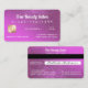 C'est le carte de visite idéal pour une femme d'affaires branchée, élégante, féminine et moderne. Ce design présente une parties scintillant magenta-violet brillante et chic imitation diagonale brillamment foncée et brillante, et un dégradé brillant magenta-violet foncé dans le style mignon, unique et intelligent d'une carte de crédit. C'est le moyen idéal de promouvoir votre entreprise auprès de clients potentiels. ***REMARQUE IMPORTANTE DE CONCEPTION : Pour toute demande de conception personnalisée, comme les demandes de produit assorties, les changements de couleur, les changements de placement ou toute autre demande de modification, veuillez cliquer sur le bouton "CONTACTER" ou envoyer un courriel au concepteur directement à lafemme.art@gmail.com. Vous pouvez même lui envoyer par courriel une demande pour un design entièrement personnalisé et nouveau.
