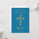 Carte plate pour la communion avec une croix d'or sur un arrière - plan bleu. Personnalisez avec le texte, le nom et la date.