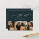 Une carte de date d'enregistrement de photo de script minimal de budget comportant une belle calligraphie de script, 3 photos et un texte minimal sur le devant. Le verso comprend le site web du mariage pour plus d'informations. Cliquez sur le bouton modifier pour personnaliser ce design.