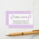 Réservez des cartes de demande avec design pourpre pieds bébé et arrière - plan polkadot violet.