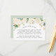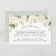 La carte incluse dans la douche bébé demande un livre pour enfant pour créer une bibliothèque pour bébé au lieu d'une carte traditionnelle. Le design comprend le titre "Livre pour bébé" avec une bordure élégante de style aquarelle avec des roses peintes, des fleurs de renoncule et des feuilles dans des tons neutres de blanc, crème, rose blush, or, vert et noir doux. Le dos de la carte est vert doux avec un motif de points brossés abstraits.