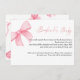 Une charmante carte de demande de livre pour une baby shower avec un nœud rose dans un style boho chic. Les invités sont priés d'apporter un livre pour enfants neuf ou d'occasion plutôt qu'une carte.