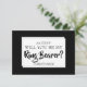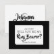 Chaque marié a besoin d'un porteur de bague le jour de son mariage. Cette carte de demande est un excellent moyen de demander à un neveu, au fils d'un ami ou à tout garçon spécial dans votre vie de faire partie du cortège de mariage. Caractéristiques d'un design noir et blanc avec des lettres en script gras et un espace pour entrer un message spécial.