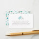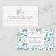 Carte de demande de réservation de la maman douce et de l'oiseau bébé au design coloré des feuilles. Des couleurs de genre neutres en aqua, turquoise, sable et blanc.
