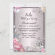 De jolies fleurs roses et blanches avec un papillon. Vous organisez un mariage ? Vous avez besoin que vos amies vous tiennent la main, vous aident à organiser et vous rendent parfaite pour ce jour spécial. Faire la demande est facile avec cette carte de demoiselle d'honneur. Personnalisez la carte en modifiant le texte dans les champs prévus à l'avant et à l'arrière. Vous pouvez changer la police, la taille et la couleur, ainsi que le type et le style de papier.