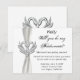 Vous organisez un mariage ? Vous avez besoin que vos amis vous tiennent la main, vous aident à vous organiser et vous rendent parfaite pour votre grand jour. Faire sa demande est facile avec cette carte de demoiselle d'honneur. Personnalisez la carte en changeant le texte dans les champs fournis au recto et au verso. Vous pouvez changer le style de police, la taille et la couleur, ainsi que le type et le style de papier.