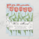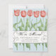 Envoyez à votre famille et à vos amis cette carte de déménagement florale élégante pour leur faire connaître votre nouvelle adresse. Ce design présente une rangée de tulipes roses printanières sur un arrière - plan bleu. Au centre de l'écriture décorative en noir, on peut lire "We've Moved" (Nous avons déménagé). Voici votre nom de famille et votre adresse pour personnaliser. Le dos de la carte contient un message et une signature personnalisés. Conçu uniquement pour vous par Tim Coffey.