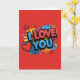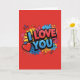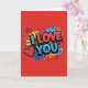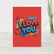 Une carte 'Je t'aime' lumineuse et amusante, dans un style de design Pop Art. Convient à tout le monde, pour n'importe quelle occasion.