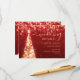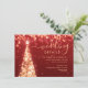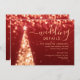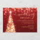 Modèle de carte d'information/détail de mariage Arbre de Noël doré rouge élégant et festif, avec adresse de fête et instructions, Arbre de Noël aux lumières scintillantes et typographie moderne.