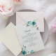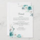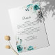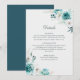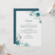 Partagez les informations relatives à votre événement important avec style grâce à cette carte de détails de mariage botanique sarcelle. Avec ses fleurs sauvages aquarellées et sa typographie raffinée sur un fond blanc cassé doux, ce design allie une élégance naturelle à une clarté moderne. Les accents sarcelle riches ajoutent de la profondeur tout en conservant une esthétique romantique et intemporelle.