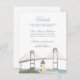 Carte d'invitation de mariage côtier classique avec une illustration aquarelle peinte à la main du pont de Newport, Rhode Island. Personnalisez cette invitation en ajoutant les informations sur votre mariage, y compris le lieu de réception, l'hébergement et le site web.