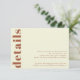 Voici notre carte Retro les années 70 Inspirée Mariage Details Card, un ajout super à votre gamme de papeterie mariage. Découvrez l'énergie vibrante et l'esthétique funky des années 1970 avec ce design d'inspiration rétro, parfait pour les couples à la recherche d'une façon unique et mémorable de partager des informations mariages importantes. Préparez-vous à chanter avec notre Retro les années 70 Inspirée Mariage Details Card. Avec ses motifs audacieux, ses tourbillons psychédéliques et ses couleurs vibrantes, cette carte capture l'esprit de l'ère de la discothèque et ajoute une touche amusante à vos invitations de mariage. Rendez hommage à la nostalgie des années 1970 avec ce design d'inspiration rétro qui rend hommage à une époque révolue de boules disco, clochers et pouvoir fleuri. C'est un choix ludique et fantaisiste qui donne le ton pour une fête amusante et mémorable. Faites une impression durable avec notre carte Retro les années 70 Détails Mariages inspirés qui se démarque de la foule. C'est une façon amusante et mémorable de partager des informations importantes sur les mariages avec vos invités et de les exciter pour les festivités à venir. Préparez-vous à célébrer votre amour dans le style rétro avec notre carte Retro les années 70 Inspirée Mariage Détails Card. C'est la façon idéale d'ajouter une touche de plaisir et de nostalgie à votre suite de papeterie mariage.
