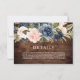 Carte de détails de mariage élégant rustique bleu marine et rose