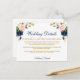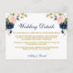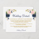 Carte d'insertion de détails de mariage à l'aquarelle rose bleu floral or élégant