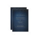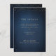 Faux paillettes dorées sur fond bleu marine foncé et monogramme sophistiqué du couple au dos, Simple et élégant. Superbe carte de détails de mariage pour un mariage classique moderne et un mariage formel.