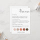Carte de détails de tenue de mariage, carte de détails de palette de couleurs, carte d'insertion de code vestimentaire pour invités