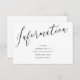 Carte d'information de calligraphie pour le carton d'invitation de mariage. Cette carte de réponse RSVP correspond à la collection de mariage "Nous avons noué le nœud". Personnalisez avec les détails que vous souhaitez que vos invités sachent pour votre jour de mariage. Cliquez sur "cliquez pour personnaliser davantage" pour changer le style de police, la taille, la couleur ou la couleur de fond.