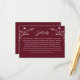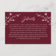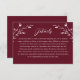 Cette belle carte rustique de boîtier mariage dispose d'un joli arrière - plan bordeaux avec des fleurs sauvages blancs dessinés à la main et une typographie élégante. Utilisez ce modèle de carte pour les détails, les directions, les logements, etc. C'est le design parfait pour un mariage rustique mais élégant. Cette conception est coordonnée avec notre collection Rustic Fleur sauvage Mariage ... voir la collection pour plus d'articles!
