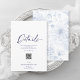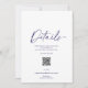 Partagez toutes les informations importantes sur votre journée spéciale avec cette carte élégante de détails de mariage. Doté de fines flores bleu poussiéreuses et d'un mélange de typographie classique et de script, cette carte est à la fois élégante et fonctionnelle. Vous y trouverez de l'espace pour les cérémonies, des informations sur le lieu, les hébergements et un code QR ou un site Web pour faciliter l'accès des clients. Un bel ajout à n'importe quelle suite mariage dans un thème bleu romantique.