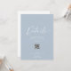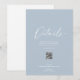Partagez toutes vos informations importantes sur le mariage avec cette élégante carte de détails bleu poussiéreux. Doté d'une mise en page minimaliste propre, d'un en-tête de script blanc et d'un code QR scannable, c'est la façon idéale de guider les clients vers votre site Web pour trouver des hébergements, des horaires, des itinéraires et plus encore. Un ajout intemporel et élégant à votre suite mariage.