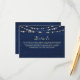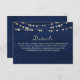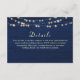 Ajoutez une touche personnalisée à votre suite mariage avec cette carte de détails de mariage bleu marine avec des lampes à cordes brillantes et une texture rustique en bois. Idéal pour inclure votre site Web, des informations RSVP, les directions de réception ou l'hébergement. Coordonnée avec la suite d'invitation à la lumière à cordes d'hiver correspondante pour un look cohésif.