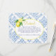 Envoyez des informations supplémentaires pour votre événement avec cette jolie carte de détails italiens au citron et carrelage bleu. Avec un style toscan de Positano, ce design est parfait pour tout événement de printemps ou d'été.