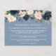 Aquarelle moderne Elégante Pink Blush Blue Floral Détails Mariage Insertion Carte - Dusty Blue avec roses roses, roses bleus et verdure botanique.
