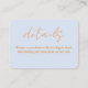 Célébrez l'amour enchanteur entre la mariée et le marié alors que nous nous engageons dans un voyage vers l'éternité. Nous sommes ravis de vous invitations pour faire partie de notre Mariage d'Histoire d'Amour, où chaque moment est un témoignage de la puissance de l'amour et de la beauté de deux coeurs qui s'entrelacent comme un. Cette carte de détails de Mariage Love Story est votre porte d'entrée vers la magie qui vous attend lors de notre journée spéciale. Alors que nous organisons une célébration inoubliable, nous voulons vous assurer que vous avez toutes les informations essentielles pour rendre votre expérience aussi joyeuse et transparente que possible.