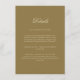 Une carte de détails minimaliste raffinée de mariage conçue dans un arrière - plan doré intemporel avec un script élégant. Parfait pour partager avec vos invités des informations importantes telles que l'hébergement, les horaires de navette ou les détails de la réception. Cette carte complète toute suite mariage moderne ou classique et garde votre papeterie mariage cohésive et élégante.