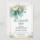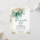 Une carte de douche nuptiale élégante avec des fleurs d'aquarelle, de la verdure et un arc vert gras. Les détails pastel doux et la disposition moderne en font un beau choix pour célébrer l'amour et l'amitié d'une manière intemporelle et féminine.