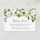Faites glisser ces petites cartes dans votre baby shower ou vos invitations à la douche nuptiale lorsque vous demandez que les invités apportent leurs cadeaux non emballés. Le design floral chic à l'aquarelle dans le blanc tendre et le vert eucalyptus correspond à notre collection d'invitation florale Alabaster. Un poème sucré explique le concept et la demande de "douche d'affichage", et peut être modifié pour répondre à vos besoins. Personnalisez avec le nom de l'invité d'honneur et la date de la douche en bas.