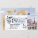 Billet de carte d'embarquement de mariage à Paris, France avec cœur et icône d'avion avec la Tour Eiffel en or, Enregistrez la date