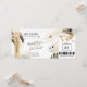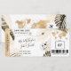 Destination Billet de carte d'embarquement pour mariage à la plage Avion doré Enregistrer la date avec icône de cœur et d'avion avec feuilles tropicales