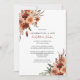 Cette carte de funérailles élégante et naturelle présente des fleurs rustiques en terracotta et rouge foncé à l'aquarelle, des feuilles sèches et des brindilles.