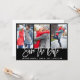 Annonce de fiançailles de faire-part de date de Modern Brush Script 3 Photo Save The Date en noir