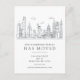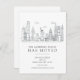 Faire-part mobile de New York avec un sketch en noir et blanc, paysage urbain sur un arrière - plan blanc.
