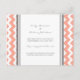 Cartes de faire-part de fiançailles dans des tons élégants de pêche, orange, rose, gris et blanc avec des zigzags rétro et un motif vintage, personnalisables avec vos noms, le moyen idéal d'annoncer vos fiançailles à vos amis et à votre famille. Disponibles dans une large gamme de produits de mariage assortis.