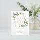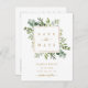 Cette carte de faire-part de mariage représente un feuillage d'eucalyptus peint à l'aquarelle, des feuilles vertes et un cadre carré doré. Pour une personnalisation plus avancée de ce design, veuillez cliquer sur le lien "Personnaliser davantage". Des articles assortis sont également disponibles.