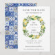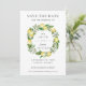 Cette carte de faire-part de mariage chic présente une couronne de citron aquarelle estivale. Conçue pour correspondre à notre collection de mariage Lemon Méditerranée. Personnalisez-la facilement et rapidement avec vos détails, il suffit d'appuyer sur le bouton personnaliser pour réorganiser et formater le style et l'emplacement du texte. (c) The Happy Cat Studio