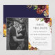 Mettez en valeur votre photo de pré-mariage avec cette carte de faire-part photo de style boho chic. Caractérisée par une belle aquarelle de couleur Bourgogne, jaune, orange brûlé et une couronne de feuillage de verdure. Personnalisez-la facilement et rapidement avec vos détails, il suffit d'appuyer sur le bouton de personnalisation pour réorganiser et formater le style et l'emplacement du texte.