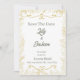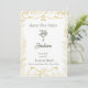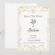 Annoncez votre jour J avec style grâce à cette élégante carte "Save the Date" à motif de feuilles d'or. Conçue avec des bordures botaniques délicates et une typographie gracieuse, ce modèle allie charme classique et touche moderne. Les détails dorés raffinés sur fond blanc créent un look intemporel, parfait pour n'importe quel thème de mariage - des cérémonies de jardin romantiques aux célébrations luxueuses en hôtel.