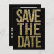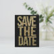 Faire-part de mariage en typographie pailletée or sur fond noir gras. Un modèle de carte de faire-part de mariage en typographie créative, audacieuse et tendance pour convenir à la plupart des mariages. Que le noir et blanc soit votre thème, que vous ayez un mariage en soirée, un mariage pailleté or, un mariage moderne... ce design de carte postale créative abordable est pour vous !