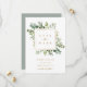 Cette invitation de faire-part de mariage présente une verdure d'eucalyptus peinte à l'aquarelle, des feuilles vertes et un cadre carré doré. Pour une personnalisation plus avancée de ce design, veuillez cliquer sur le lien "Personnaliser davantage". Des articles assortis sont également disponibles.