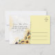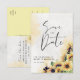 Annoncez la date de votre mariage avec cette carte postale florale au tournesol aquarelle élégante. Un mélange de calligraphie moderne et d'art vintage avec de belles teintes jaunes. Tout le texte peut être modifié et personnalisé sauf le titre "Save the Date" au recto. Plus de faire-part de mariage de style vintage sont disponibles dans notre vitrine.