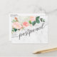 Une carte postale rapide et facile pour informer vos invités de votre changement de date de mariage avec des florales aquarelles et un fond en marbre.