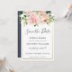 Cette carte de faire-part de mariage chic présente une belle composition florale rose aquarelle. Conçue pour correspondre à notre collection de mariage Bloomsbury. Personnalisez-la facilement et rapidement avec vos informations, il suffit d'appuyer sur le bouton personnaliser pour réorganiser et formater le style et l'emplacement du texte. (c) The Happy Cat Studio