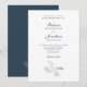 L'élégante carte d'invitation de mariage présente un design typographique élégant avec une illustration minimaliste de la ligne de feuilles tropicales dans une couleur bleu marine. Le thème des couleurs se retrouve sur le dos de la carte avec l'image de la feuille tropicale en blanc. Ce papier à lettres mariage est prêt pour vous à customiser avec les détails de votre journée spéciale. Fait partie d'une collection en pleine croissance.