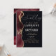 Carte faire-part de mariage simple design noir foncé arrière - plan avec agate rouge bordeaux design mariage moderne minimaliste carte moderne design et tendance noir floral
