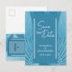 Les feuilles tropicales font un appel moderne et captivant pour ces cartes de faire-part de mariage. Caractéristiques teintes de couleur sarcelle. Utilisez pour compléter les thèmes de mariage tropicaux et les événements spéciaux en utilisant le bleu sarcelle comme couleur focale. Le recto de la carte postale comporte les mots "Save the Date" ainsi que les noms des mariés et la date du mariage. Le verso de la carte accueillera une photo. Il y a également un code QR que vous pouvez utiliser pour votre site web de mariage, RSVP, liste de mariage (entre autres). Le modèle fournit également le nom et l'adresse postale du destinataire pour l'avoir imprimé directement sur la carte postale. Utilisez le modèle pour personnaliser.