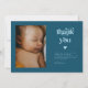 Carte faire-part de naissance simple et rétro avec un collage photo avec un texte de police rétro qui dit "merci" avec des étoiles autour. La couleur arrière - plan est bleu turquoise.
